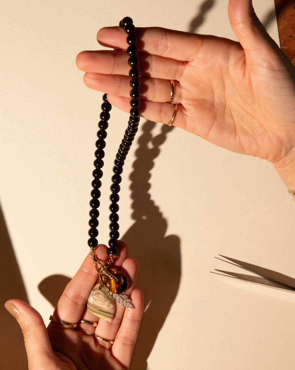 These stones don’t need much, but they do love good company. I love pairing Collected pendants with pieces that play with contrast.